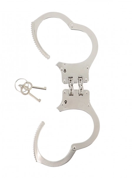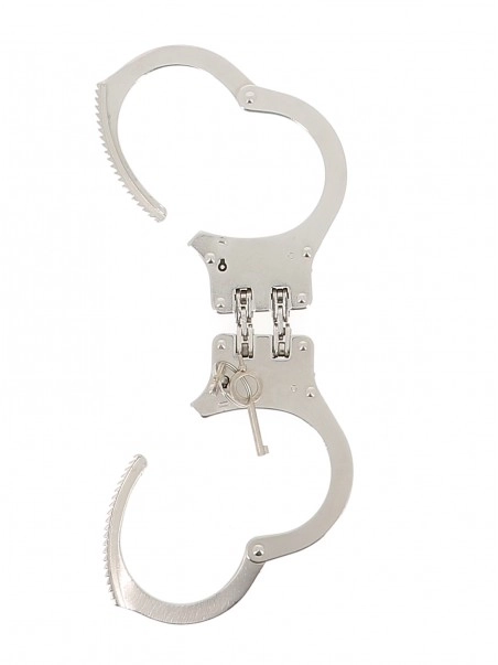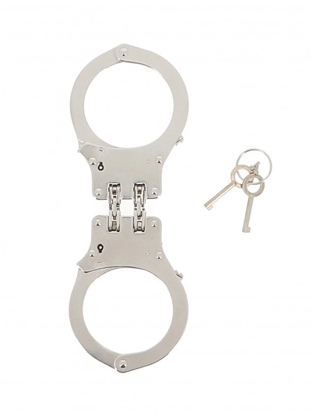 Une double charniu00e8re relie chaque menotte.u00a0Ces menottes limite plus efficacement les mouvements des mains et des bras.Deux clu00e9s sont fournies.