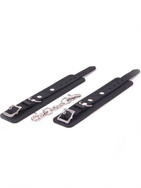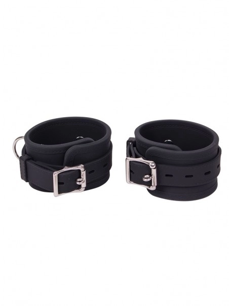 Paire de menottes pour cheville en Silicone très confortable et de grande qualité. Pour renforcer la rigidité nous avons ajouté une lanière de caoutchouc épais sur toute la longueur. Chaque menotte est réglable et est équipée d’un anneau D.