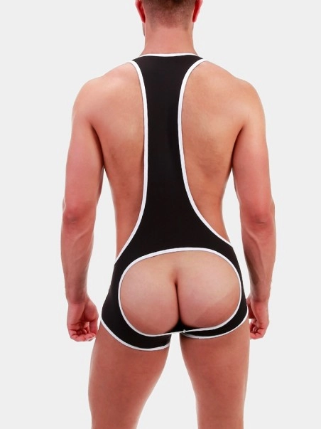 La coupe elle, est tru00e8s u00e9chancru00e9e et tru00e8s sexy. Cu00f4tu00e9 face les longues bretelles affinent la silhouette et plonge dans un shorty minimaliste assorti du2019une poche confortable u00e0 effet gros paquet. Cu00f4tu00e9 pile, le body tru00e8s u00e9chancru00e9 laisse une large part de visibilitu00e9 aux dorsaux, et cu2019est tant mieux, et se complu00e8te par une belle ouverture pour les fessiers.