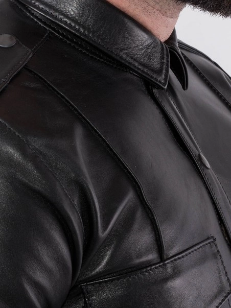Cette chemise cuir Slim Fit Premium de Bruthal Gear est le choix idu00e9al pour les fu00e9tichistes du cuir qui cherchent u00e0 ajouter une touche de style unique u00e0 leur garde-robe fu00e9tichiste. Parfaitement assortie avec un pantalon en cuir et notre perfecto en cuir, elle est conu00e7ue pour vous offrir un look masculin et sexy. Profitez de la qualitu00e9 supu00e9rieure de notre chemise cuir Slim Fit Premium pour faire ressortir votre cu00f4tu00e9 viril et assumu00e9.