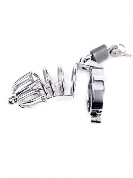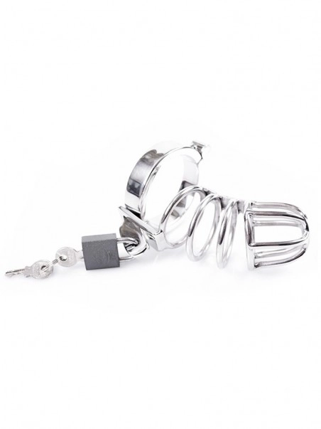 Efficace et simple u00e0 utiliser, cette cage de chastetu00e9 en inox au design ergonomique, se porte tru00e8s facilement et discru00e8tement sous ses vu00eatements. Munie d’une sonde uru00e9trale amovible et pour un poids de 250 g, elle vous procurera d’intenses sensations. Un cadenas est fourni pour verrouiller la cage.