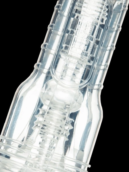 La texture transparente de Go permet de voir sa bite s’activer dans le masturbateur.