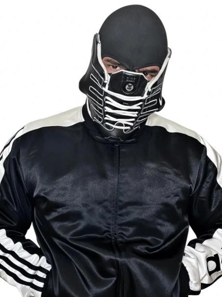 Sneakermask est une marque créée par un styliste fétichiste du sport qui propose une gamme de masques fabriqués à partir de baskets Nike ou de grandes marques pour un look unique.