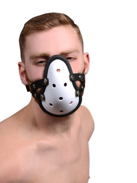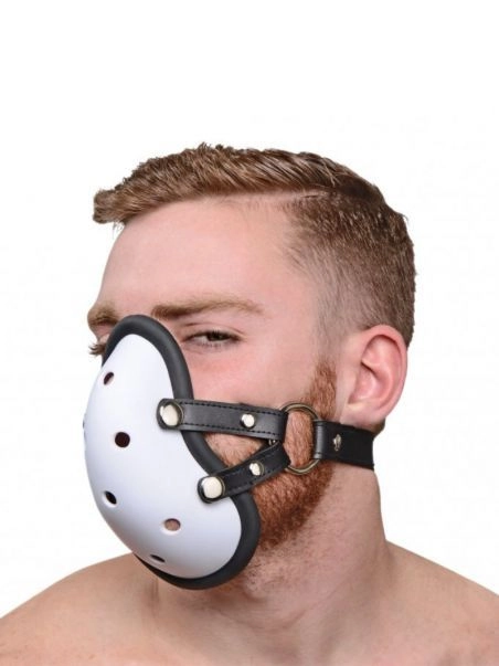 Adoptez un look qui ravivera les fans de football amu00e9ricain avec cette museliu00e8re inspiru00e9e des coquilles des athlu00e8tes. Libre u00e0 vous de la mettre telle quelle, ou en glissant une chaussette ou un jockstrap u00e0 l’intu00e9rieur. Pour complu00e9ter le style fetish, cette museliu00e8re est u00e9quipu00e9e d’une laniu00e8re ru00e9glable en cuir.
