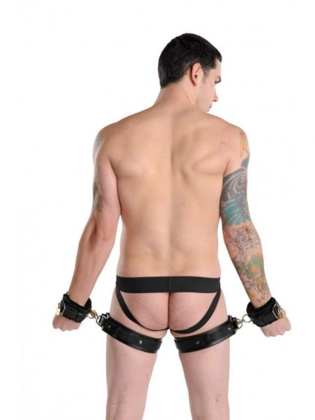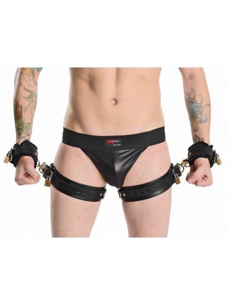Du00e9couvrez une nouvelle forme de bondage avec ces menottes emprisonnant les cuisses et permettent d’y accrocher d’autres contraintes. Fabriquu00e9es en cuir premium, elles sont entiu00e8rement ajustables pour une restriction parfaite. Vous disposez ainsi u00e0 loisir de votre partenaire…