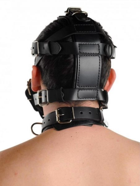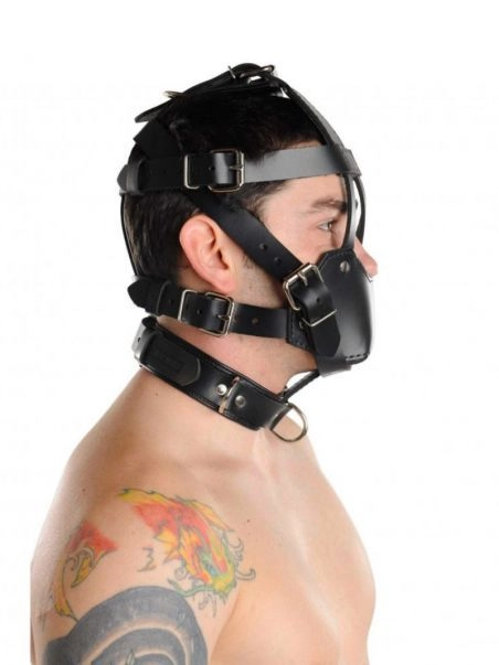 Allez au-delu00e0 de la simple restriction avec cette museliu00e8re conu00e7ue pour verrouiller et soumettre totalement votre partenaire. Fabriquu00e9e en cuir u00e9pais et solide, elle est entiu00e8rement ru00e9glable et empu00eache l’utilisation de la bouche. Elle est de plus u00e9quipu00e9e d’un collier lui permettant de rester parfaitement en place.