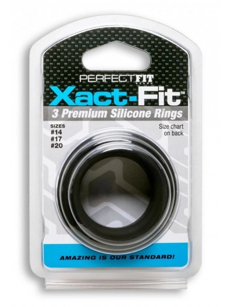 Pour ceux qui ne sont pas dans le diamu00e8tre "standard" ce pack est fait pour vous. Le pack Xact-Fit Medium vous propose 3 cockrings en Silicone allant de 35 u00e0 55 mm.