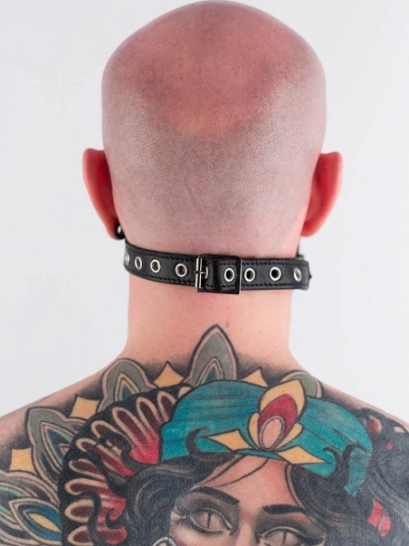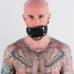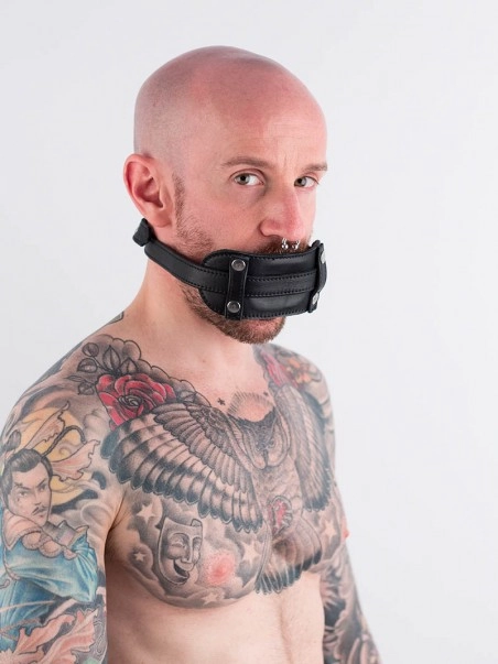 Bu00e2illon en cuir et latex, avec sangle ru00e9glable, confortable (6 cm) pour un port de longue duru00e9e.