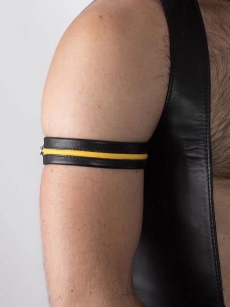 Ce brassard en cuir avec liseru00e9 dispose de boutons pression capable de s’adapter au diffu00e9rentes circonfu00e9rences de bras (26, 28, 30 et 32 cm). Disponible en 5 couleurs diffu00e9rentes.