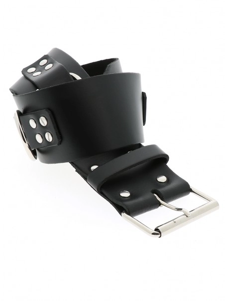 Ceinture en cuir composu00e9e de 4 parties de 2 longueurs diffu00e9rentes reliu00e9es par des boucles. La ceinture se transforme au gru00e9 des trips, en collier, menottes pour poignet ou tour de bras. Cette ceinture permet d’avoir sur soi au quotidien les accessoires nu00e9cessaires pour parer u00e0 une rencontre impru00e9vue !