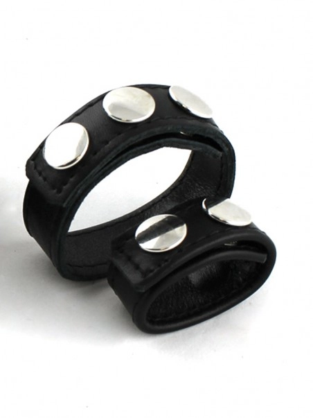Ce cockringu00a0double en cuir est idu00e9al pour avoir le paquet bien en place. Le ballstretcher se ru00e8gle par deux pressions tandis que le cockring par trois, ce qui correspond aux diamu00e8tres standards (40, 45, 50 et 55 mm).u00a0