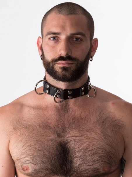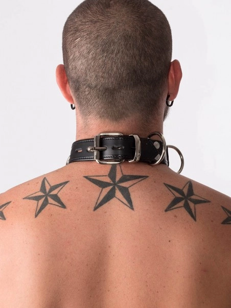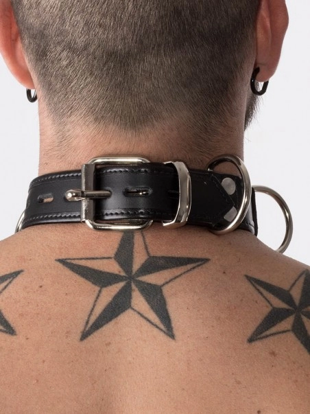 Collier en cuir, cadenassable. Avec ces 4 anneaux en D, ce collier est parfait pour un asservissement total.u00a0