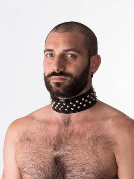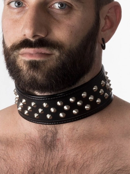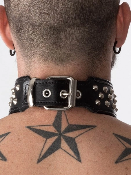 Ce collier en cuir cloutu00e9 vous aidera u00e0 devenir un bon chien fidu00e8le.