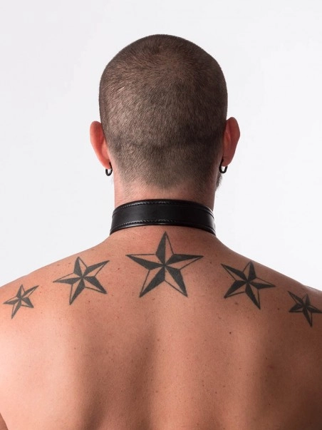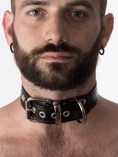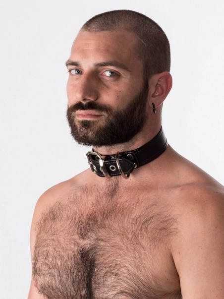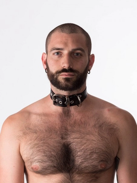 Collier en cuir hauteur 3 cm. Fermeture par boucle.