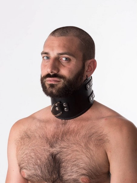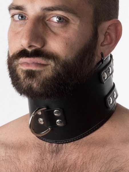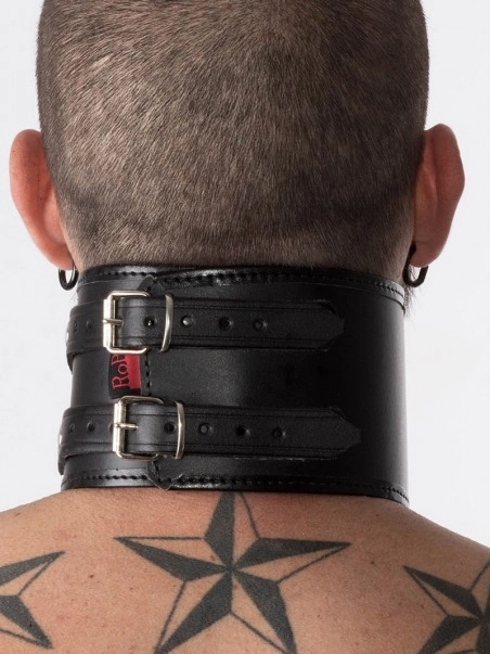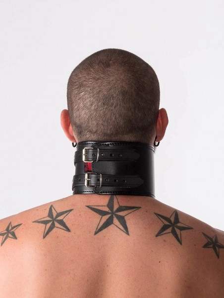 Le collier en cuir d’une hauteur de 9 cm tient la tête droite.