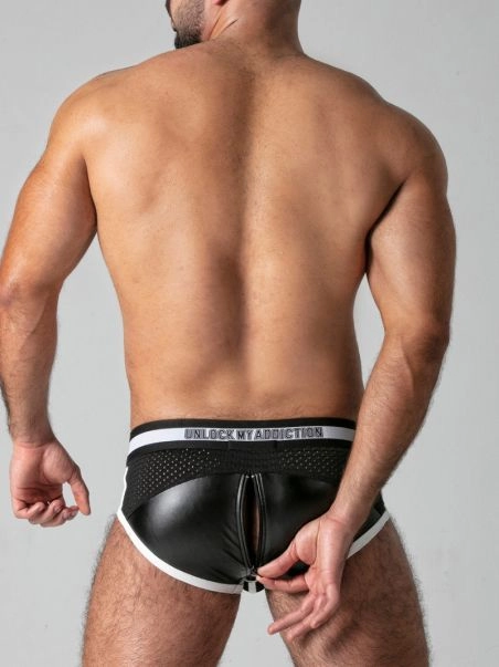 Soyez pru00eat u00e0 l’impru00e9vu avec ce slip tru00e8s sexy au look sportif offrant une poche frontale amovible et un zip arriu00e8re pour ru00e9pondre u00e0 toutes vos pulsions.